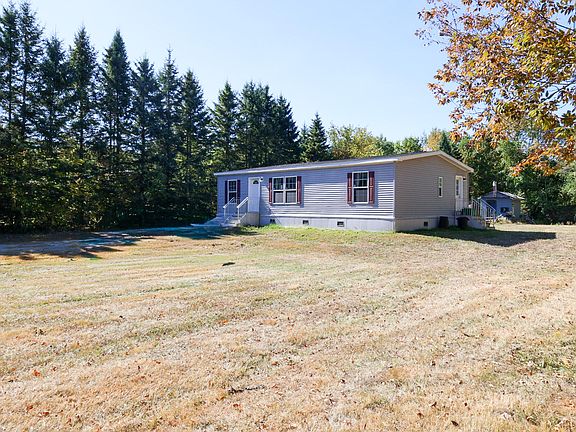 WELL MAINTAINED, MOVE-IN READY DOUBLE WIDE HOME IN A QUIET RURAL SETTING MINUTES FROM DOWNTOWN FARMINGTON. This home is located on a level, open parcel surrounded by healthy tree growth that provides privacy. The home was purchased through the Maine State Housing mobile home replacement program that requires homes to be secured to a concrete slab with tie-downs, waterline and septic system inspected and propane tanks installed for the high efficiency furnace, hot water heater and range. The primary bedroom has a walk-in closet with an en-suite full bathroom. Bedrooms #2 and #3 have full closets with the second full bathroom located just outside their doors. The open concept living, dining and kitchen with island is a great space to entertain family and friends year-round. Both front and rear yards offer plenty of level open space for entertaining as well or to add a garage or additional storage sheds. Only minutes from Farmington's Historic Downtown Business District and all of the shopping, restaurants, medical and educational facilities that the hub of Franklin County has to offer. For you outdoor enthusiasts, enjoy the many multi-use recreational trail systems just minutes away or the pristine waters of the Sandy River. During the winter months, make some turns at Farmington's own Titcomb Hill Ski Mountain or take a 45-minute ride to either Saddleback or Sugarloaf Ski Resorts for some of the best skiing on the east coast. COME AND EXPLORE THE POSSIBILITIES!!!