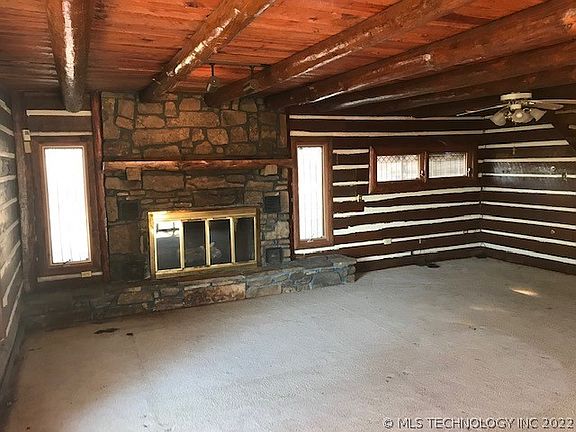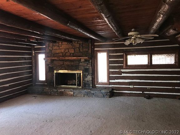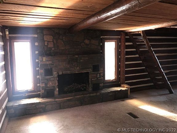 Lakeview Log home with gazebo- tall vaulted log ceiling, 2 living areas with 2 gas fireplaces, loft with log designed ladder, large bar & wall of storage in kitchen, tri-level to 2 bedroom & full bathroom, ground level primary bedroom with seating area and half bath, inside laundry room, attic with stairs has storage above primary bedroom, ceiling fans, storm cellar under house with steel door, lots of mature trees, covered patio that you overlook to a Lakeview, 1 car detached garage , property sits on more or less 5 acres of privacy. Great place to enjoy the country life of fishing and serenity with nature.
