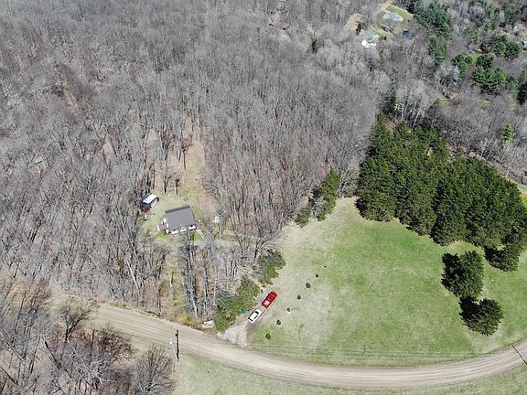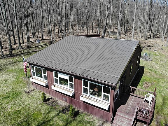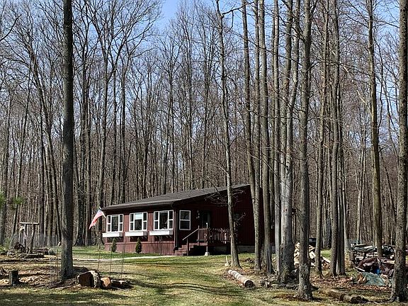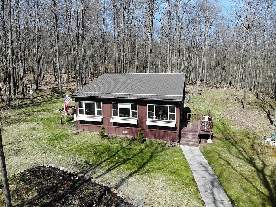 This turnkey private home is nestled in the woods, high on the mountain with beautiful southern views. Home is well insulated with a newer metal roof and many remodeled improvements. This home consists of 3 bedrooms, 1 full bath, and a large kitchen with a large deep sink and plenty of storage. Electrical system was totally upgraded in 2020 and has a new Generac backup generator with an automatic transfer switch. The home is heated with electric baseboard and 1 backup propane heater. The property consist of 6.23 acres with a mix of hardwoods and pines, nice large level field is a perfect spot for stargazing, campfires, camping, barn or another home site. Hi speed internet is available and the road is maintained by the township for year round living Seller is including in the sale a 2016 John Deere riding mower and numerous yard tools. 3 outbuildings with electric provide plenty storage space for all your toys. This retreat is off the beaten path, won't last long! Call me today!