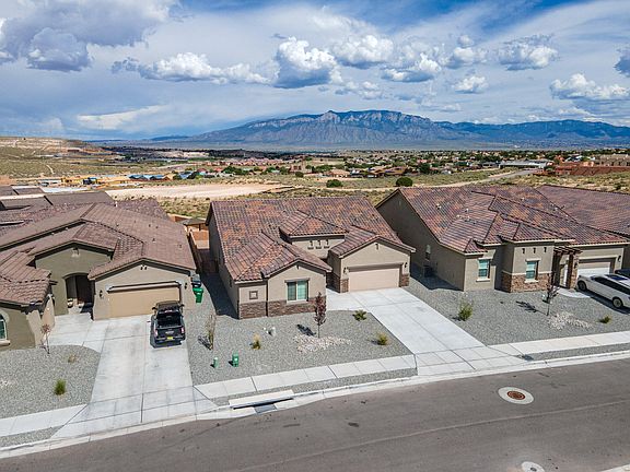 This beautiful 2021 Hakes Brothers home boasts an innovative design and quality construction. Walk into this Rio Rancho beauty and notice right away how it opens up to reveal a spacious living room that opens to the modern kitchen with pendant lighting over a huge island and continues right to the open dining room. All of which have unobstructed, breathtaking views of the Sandia Mountains. Continue outside to your covered patio to your walled back yard with even better views ready for you to design your perfect retreat. Later escape to your luxurious suite with the same incredible views and a huge walk-in closet with access to that retreat I mentioned before. Nestled in Rio Rancho's premier community and close to the best amenities. Call today for your exclusive tour of this beautiful home
