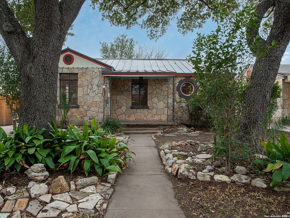 Welcome to 178 Thorain Blvd, a charming piece of San Antonio history nestled in the highly desirable Olmos Park Terrace. This 1941 "Thorman-built" rock cottage offers 1,214 square feet of inviting living space, featuring 2 cozy bedrooms and 1 bath, per tax records. Beautiful original details throughout, including gleaming hardwood floors, showcase the timeless craftsmanship of this home. The updated kitchen is perfect for cooking with gas, and the spacious living areas offer a welcoming place to relax or entertain. The property is further enhanced by a fabulous 18 x 16-foot Casita ADU, complete with its own kitchenette and full bath. This additional space adds versatility, whether you desire a guest suite, home office, art studio or rental income potential. Set on a generous lot, this home is just one block off McCullough, placing you moments from the vibrant heart of San Antonio, including The Pearl Brewery, downtown, and premier shopping areas like The Quarry and Olmos Park. With the convenience of being close to San Antonio International Airport and major thoroughfares, this is a rare opportunity to own in one of the city's most coveted neighborhoods. Embrace the charm, convenience, and character of this special property at 178 Thorain Blvd - where timeless appeal meets modern living. This historic neighborhood hosts an annual Art Stroll featuring many artists who live in the neighborhood and surrounding community.