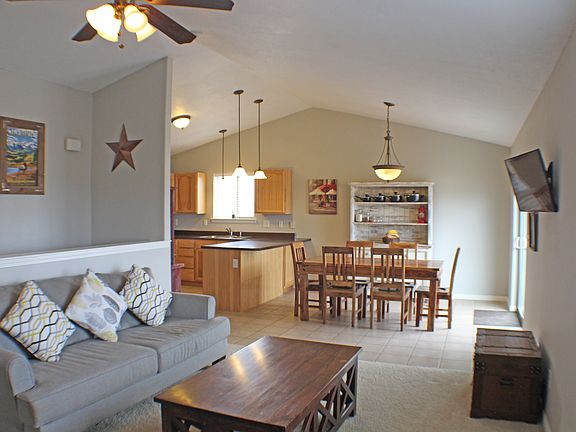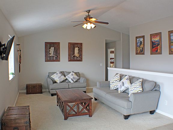This Immaculate Grassy Creek Home shows pride of ownership. Offering Four Bedrroms, three fullbathrooms and vaulted living room ceiling. Great open concept floor plan with spacious kitchen, breakfast bar, dining area with sliding doors that allow access out to a beautiful yard and views of the Wasatch mountains. Lower level is fully finished with walkout, with one bedroom and full bathroom, living area and wood burning fireplace, optional area for billards / game room you decide, plently of storage, also pre- plumbed for a kitchenette making this a fantastic lower level bonus area. 2 Car Garage, also Solar Panels. This is a must see home !