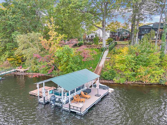 - Features: Lake on Lot, Wooded, Sloped, Dock