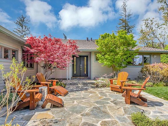 Located in the desirable South Los Altos, the peaceful and private parklike front yard welcomes you. The remodeled and expanded, the chef's kitchen has 2 skylights, pantry, custom cherry cabinetry, granite counters, Viking Professional range and integrated Thermador refrigerator. Formal living room with wall of sliding glass doors to the rear deck for indoor/outdoor living and wood-burning fireplace. Formal dining room has a built-in china cabinet and elevated window seat that overlooks the lush rear grounds. Spacious family room with wood-burning fireplace, and an entire wall of storage. The primary suite with French doors to the rear balcony, large walk-in closet & bath with stunning slate floors. Two bedrooms share a beautifully updated Jack and Jill bathroom. The garage has an epoxy floor, custom cabinetry, updated powder room and an EV charger. Manicured rear grounds with a variety of fruit trees, vegetable garden and sparkling pool and spa perfect for entertaining.