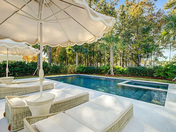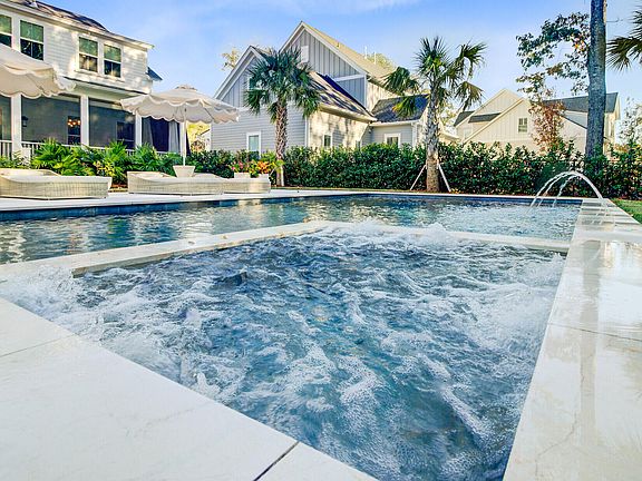 Amazing lake front oasis with stunning views of Bolden Lake. Large in-ground pool with hot tub by Aquatica (has heating and cooling option) surrounded by marble decking. Home is around 3200 sqft with 4 bedrooms and 3.5 bathrooms. In addition, there is a finished room over the detached 2 car garage (FROG) that is around 331 sqft. The FROG has another bedroom and full bathroom for a total of approximately 3531 sqft of heated and cooled space and 5 bedrooms, 4.5 bathrooms. Inside the main home, DOWNSTAIRS there is an open concept kitchen, family room, dining room as well as the PRIMARY BEDROOM with ensuite bathroom and a large, custom closet. The laundry room and half bath complete the downstairs.Upstairs there are 3 bedrooms with joining bathrooms and a large flex space. There are custom window treatments throughout the home. Custom Bermuda shutters with sunshades on the rear porch. Custom designed landscaping throughout the entire yard with uplighting on several installed palms. You can open the rear gate and walk the one mile path around the 12 acre Bolden Lake! This is not just a home, it is an opportunity for an incredible Lowcountry lifestyle. Riverside at Carolina Park offers larger, more private lots while having the conveniences and amenities of a master planned community. The primary home and finished room over garage offer opportunities for multi-generational living in an incredible lakefront setting.