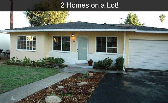 Redesigned and renovated. Two homes on a lot in a great neighborhood. Front house is 2 bedroom plus den, back house is a small 3 bedroom. Back house alone could rent for $1400 a month paying half of your mortgage and property taxes! Lots of yard space, both houses have front and rear yard space. Great patio space for outdoor living. Both properties are legal and separately metered. Front house has parking in driveway and a single car garage. Back house has a storage shed / workshop with concrete foundation. New windows and newer roof on front house. Property has already completed Pasadena Occupancy Inspection. Lots of space to garden, or create your own outdoor homestead.