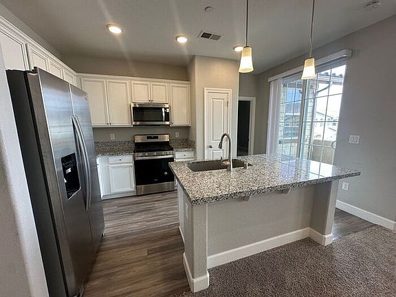 2 Bedrooms. 2 Bathrooms. 1 Car Garage. Rent $2350. Deposit $2340. 1330 sq. ft. Includes fridge, D/W, gas range, microwave, W/D, A/C, fireplace and double pane windows. Two pets of 30 lbs. or under, upon approval, with an additional security deposit of $500 per pet. This HIGHLY UPGRADED townhome end unit that SHOWS LIKE NEW is located in the very desirable community of Esplanade at Damonte Ranch in Southeast Suburban Reno. The floor plan is open with the large VERY SPECIAL GOURMET KITCHEN that includes hardwood flooring, a great deal of solid granite countertop space with upgraded decorative tile back splash, lots of upgraded cherry stained cabinetry, stainless steel Samsung appliances with a gas range that has 5 sealed burners, a pantry, an island with a upgraded sink, pendant lighting in satin nickel finish, abundant overhead recessed lighting and a breakfast bar merging as one with the large great room that has an ornamental gas log fireplace. The luxurious master suite has a large master bedroom with a ceiling fan; a large master bathroom that has a raised vanity with a solid granite countertop and his and her sinks, a garden tub, a separate shower stall plus a spacious walk-in closet with generous shelving and single/double pole hanging space. Additional features include tile flooring in the entry, secondary bathroom and the laundry room; 2-tone designer paint on all of the walls that is offset by 5 inch white baseboards; 2-inch faux wood blinds throughout; dramatic 9-foot ceilings throughout; extra shelving in the laundry room and garage; an uncovered balcony; lots and lots of energy saving features and an overhead sprinkler system throughout. Association amenities include a private fitness center plus a swimming pool/spa. As for location, you are near a large park with a Trail System that adjoins a Wetland Preserve which allows for fabulous unobstructed views of Mt. Rose & the Sierras. In addition, you are just minutes from the Southeast Connector, the Shayden Summit Reno Mall, other great shopping, restaurants, Virginia City, Carson City, the Mt. Rose Ski resort and Lake Tahoe while still being just minutes from downtown Reno via the 395 freeway. Landscape care is provided by the association. The tenant pays G, E, W, T, & S. 1-year lease. Contact us to schedule a showing.