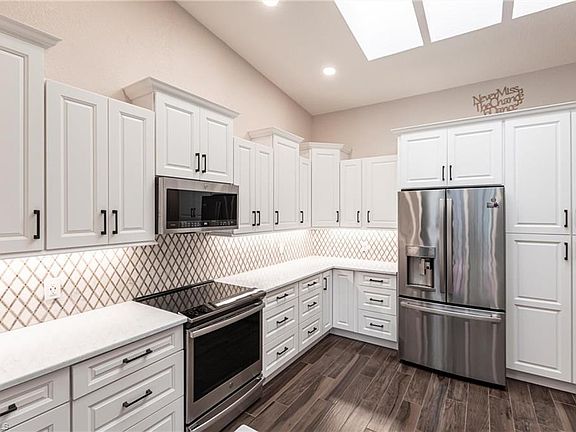 Looking for “new” but want more space? This 3-bed, 2-bath villa delivers the best of both worlds — modern upgrades and generous living area rarely found in newer builds. With over 1,000 sq. ft. more than nearby new villas, this spacious home lives like a single-family residence and offers exceptional value! Renovated top-to-bottom in 2021–2022 ($200K+ invested) and featuring a 2024 metal roof, this property is completely move-in ready. Enjoy upgraded plumbing, wiring, HVAC, impact windows, and elegant wood-look porcelain tile throughout. The gourmet kitchen shines with top quartz countertops, GE Profile stainless appliances, beverage cooler, and light-filled skylights tinted for UV protection. Relax or entertain in the open living space overlooking a tranquil saltwater pond with fountain and gazebo views. The oversized 2-car garage, screened courtyard, and private patio complete the package. Located in friendly & fun Paradise Garden Villas, residents enjoy 2 pools, fishing piers, gazebos, and optional social events. Just minutes from St. Andrew’s Golf Club, shopping, dining, and downtown Punta Gorda. See for yourself why this villa offers more space, quality, and comfort than anything else in its class — schedule your private showing today!