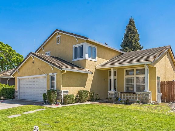 Don't miss this exceptional opportunity to own a beautiful home in the desirable Weston Ranch neighborhood of Stockton. This two-story residence features a spacious and open floor plan, offering 4 bedrooms and 2.5 bathrooms with two full tubs and double sinks. in master bedroom Enjoy vaulted ceilings that create an airy and expansive atmosphere, an inviting kitchen with classic oak cabinetry and a designated dining area, and wall-to-wall carpeting throughout the living spaces, dual pane windows. Additional highlights include walk-in closets, elegant six-panel interior doors, and a swimming pool perfect for relaxing or entertaining. home needs some TLC