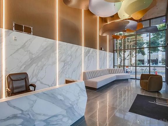 Experience the vibrant heart of Little Italy from this stunning 2-story modern loft located in the iconic DOMA building on Kettner Blvd. This beautifully designed home features vaulted ceilings, a sleek open-concept floor plan, and a spacious private patio — perfect for relaxing or entertaining. Step inside through the contemporary lobby or enjoy the convenience of a secure courtyard entrance, ideal for dog owners. The DOMA building even includes its own private dog run! Just one block from the lively weekly farmers market, scenic Waterfront Park, and some of San Diego’s best dining and culture — this is urban living at its finest.