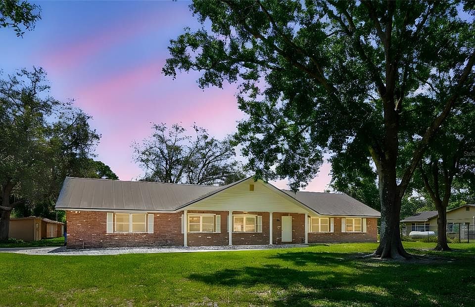 Upgraded Lutz Home on OVER 1 Acre with No HOA Located in the heart of Lutz on a spacious 1.14-acre lot, this well-maintained block home with a brick façade offers the perfect blend of privacy, functionality, and freedom—with no HOA and no deed restrictions. Featuring 3 bedrooms, 2 bathrooms, a 2-car side-entry garage, and over 2,000 square feet of living space, this property is ideal for those seeking extra room both inside and out. The lot is beautifully appointed with mature shade trees and natural surroundings, and the fully fenced backyard is just a portion of the full acreage—offering additional open space for gardens, hobbies, or future enhancements. Three powered sheds are thoughtfully placed on the property, including one for the well pump. The extra-long driveway provides ample parking, and the durable metal roof enhances both curb appeal and longevity. Hurricane-rated, double-pane, double-hung tilt-out windows and hurricane shutters provide added protection and energy efficiency. The screened lanai with insulated roof panels measures approximately 22 by 29 feet and offers a shaded, quiet retreat that opens directly to the backyard. Adjacent to that is a 22 by 14 foot paver patio that expands your outdoor living space, ideal for relaxing or entertaining. The septic system and drain field were replaced in 2010, offering peace of mind. Inside, the flexible floor plan includes a large family room with surround sound speakers, a formal living room with pocket doors, and a dining room that connects to the kitchen and formal living room. The kitchen features beadboard cabinetry, black granite countertops, matching black appliances, and a breakfast bar. Ceramic tile flooring extends through the kitchen, family room, hallways, and foyer for a clean and cohesive feel. The primary suite is spacious and features a large walk-in closet with built-in shelving and luxury vinyl plank flooring, and an en suite bath with Corian countertops, dual integrated sinks, a walk-in shower with glass bypass doors, and modern LED track lighting. The secondary bedrooms are comfortably sized and well-positioned for privacy. One of the guest bedrooms is currently being used as an office and has luxury vinyl plank flooring to give it a rich appeal. The home also features an oversized, air-conditioned utility room off the garage, a central vacuum system, a 2023 HVAC system with a programmable, eco-friendly Wi-Fi thermostat, and a security system with cameras for added peace of mind. Conveniently located near Lake Park, Dale Mabry Highway, the Suncoast Parkway, and a variety of shopping and dining options—including the Tampa Premium Outlets—this home offers the best of quiet, spacious living with quick access to downtown Tampa and Tampa International Airport. Homes with this much land, flexibility, and convenience are rare in Lutz—don’t miss your opportunity to see it in person.