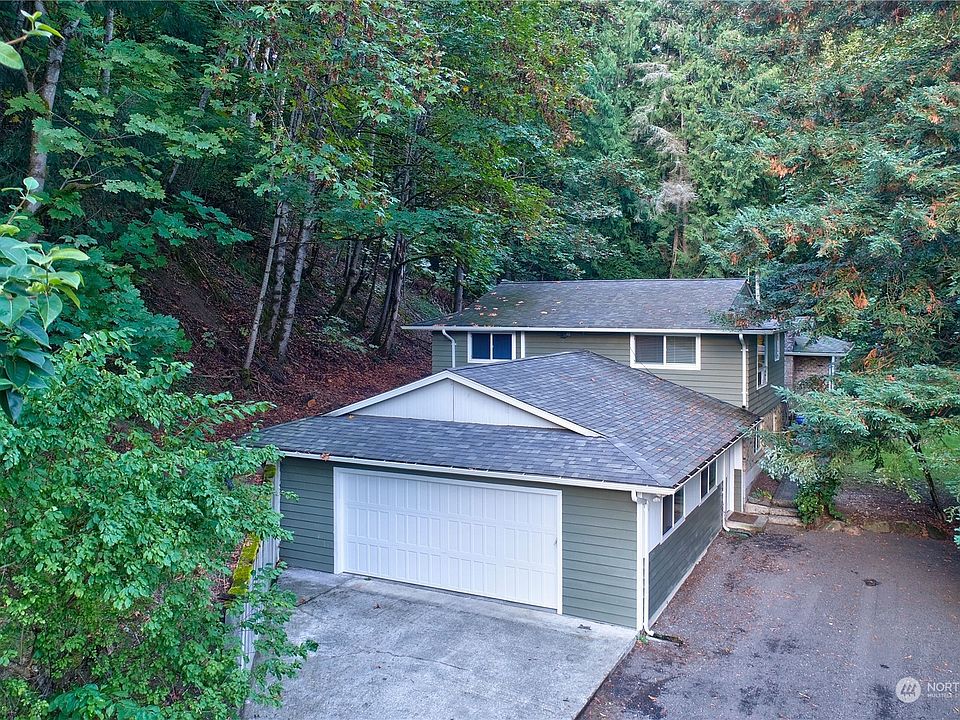 Outstanding opportunity to enjoy a gated estate property on 5+ acres with roundabout driveway leading to a wonderful 3 bedroom + bonus rm, 2.75 bath tri-level with granite counters, double oven in kitchen, new carpet, heated floors on lower level, updated plumbing & mechanics dream 2 car garage. Lovely treed surroundings with overlook of creek below. Treasure the privacy & beautiful NW spaces. Outbuildings galore with 2018 built warehouse garage for 4+ cars & equally spacious upper level awaiting vision & finishing touches. Separate 200amp panel & metal roof. The additional refinished barn brings an abundance of equipment storage. Adjacent 4.27acre property also for sale. Live in the country, feel connected. Much to see, much to appreciate.