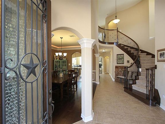 Gorgeous 2-story on nearly 1/2 an acre with all the bells and whistles AND a 4-car garage! With room to stretch and play, this home features many upgrades including: sweeping staircase at the foyer with wrought iron spindles; enormous Family Room with soaring ceilings accented by the stunning two-story stone fireplace and rich wood flooring; huge island Kitchen with granite countertops, stainless steel appliances, double ovens and 5 burner gas cooktop; large Master Bedroom with tray ceiling and spacious Bathroom featuring double vanities, oversized shower, whirlpool tub and roomy closet; executive Study with wood floors set off by French Doors at the Foyer; three large upstairs secondary Bedrooms with great storage; huge Gameroom; 2 full Bathrooms on second floor; extended covered patio overlooks the enormous backyard!
