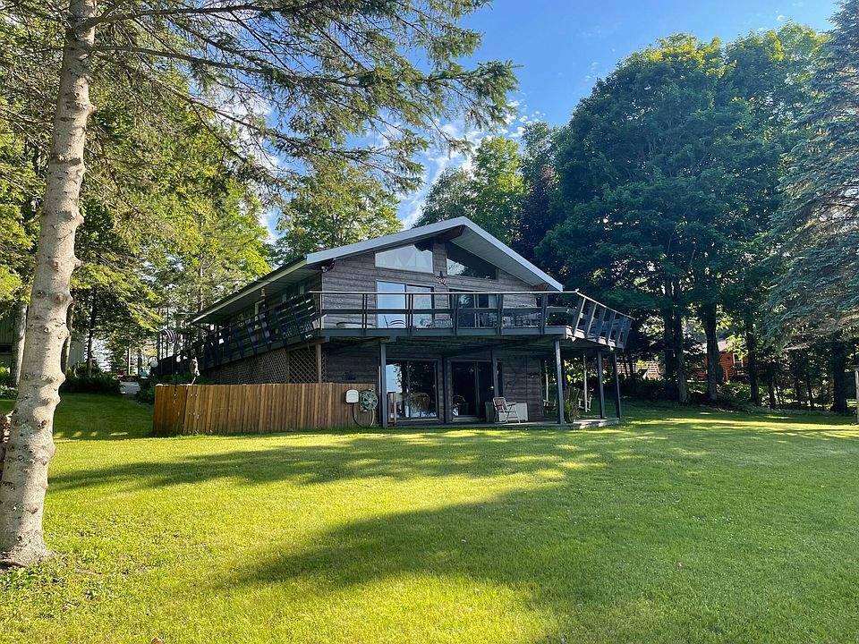 200' on South Manistique lake with 3 bed 2 bath walk out ranch home. Has a detached 22x24 garage and a 24x48 pole barn with lean too, and shed. Nice slopping lot with a paved circle drive. Baths all updated and nice tile and luxury vinyl flooring. Fully finished basement. Put on for statistical purposed.
