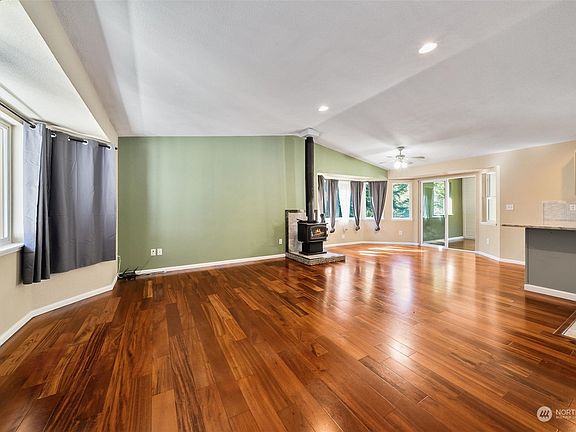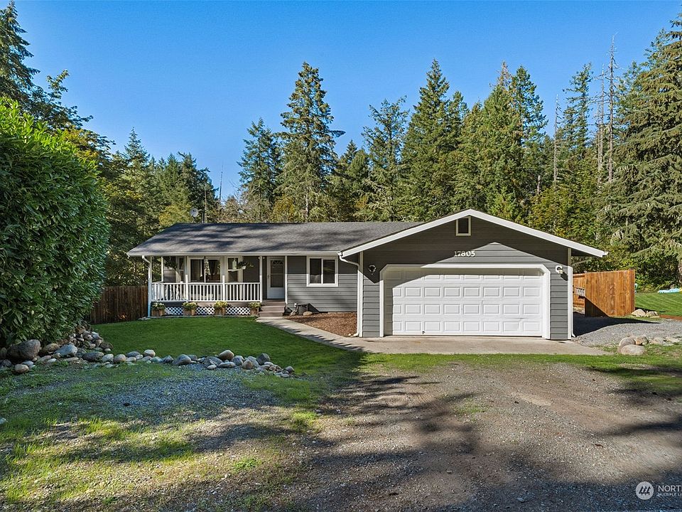 Come enjoy this wonderful 3-bedroom, 2-bath, 1300 square-foot, open-concept, ranch sitting on a quarter-acre along a wooded cul-de-sac in the Clearwood Community. This home brings you new carpet, engineered hardwood floors, freestanding wood stove with custom tile, quartz countertops, covered front and back porch, 2-car garage, generator hook-ups, and plenty of parking outside. Clearwood offers 3-fishing lakes, 5-beaches, a community center with an in-ground pool and jacuzzi, covered BBQ areas along the lake, several playgrounds, and walking trails all around. Clearwood is within minutes of the great Deschutes Waterfall and is a very common commute to JBLM. Come and check it out!