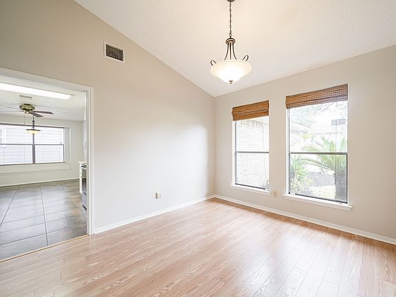 Modest 3 bedroom, 2 bathroom, single-story home featuring a 2-car attached garage! Inside, you'll find updated wood-type flooring, a tile entry, a formal dining, a fireplace in the living room, and the kitchen that includes a breakfast area, subway tile backsplash, and access to the utility room. The primary bedroom offers a tray ceiling, crown molding, and a nice walk-in closet system while the 2 secondary bedrooms share an updated full bathroom. There's a large patio in the backyard which has plenty of room for a pool and more. This home is located with proximity to Lake Houston, I-69. and Beltway 8! Showings from 6am-8pm: Download Zillow app to access. Search home in app. Click Self Tour to unlock while at front door.