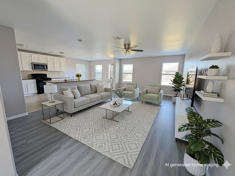 Large backyardNew flooringGranite countertopsOpen kitchenTile backsplashGame roomCozy sitting area