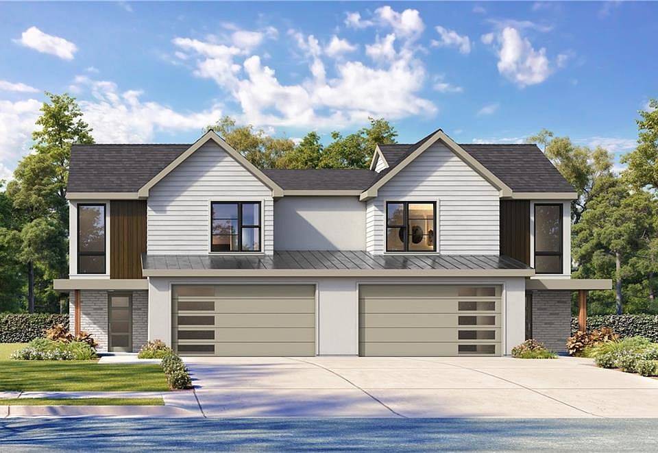 Discover modern, low-maintenance luxury living in this stunning 1.5-story villa featuring contemporary Elevation A with a modern garage door with glass panels, modern front door and composite cladding accent on the front. Thoughtfully designed with the Primary Suite on the main level, this home offers an open, airy floor plan that seamlessly connects the Kitchen, Great Room, and outdoor patio—perfect for everyday living and entertaining. Upstairs, you'll find two spacious bedrooms with walk-in closets, a versatile loft area, and plenty of extra storage. Set in a one-of-a-kind community that blends residential comfort with walkable access to dining, shopping, and entertainment at Vista Village, this is more than a home—it’s a lifestyle. Enjoy top-tier amenities including a clubhouse with a pool, fitness center, entertainment space, pickleball courts, and a putting green. Monthly HOA dues cover private streets, lawn care, snow removal, and irrigation—providing ease and peace of mind year-round. Located in a prime Lenexa setting near Prairie Star Parkway and Ridgeview, you're just steps from scenic trails, minutes to Lenexa City Center, close to multiple golf courses, and have easy access to K-10 and I-435. HOME IS UNDER CONSTRUCTION & WILL BE COMPLETE FALL 2025. Ask about our BUYER BONUS promotion. Now is the PERFECT time to pick your perfect villa & make selections. Taxes are estimated.