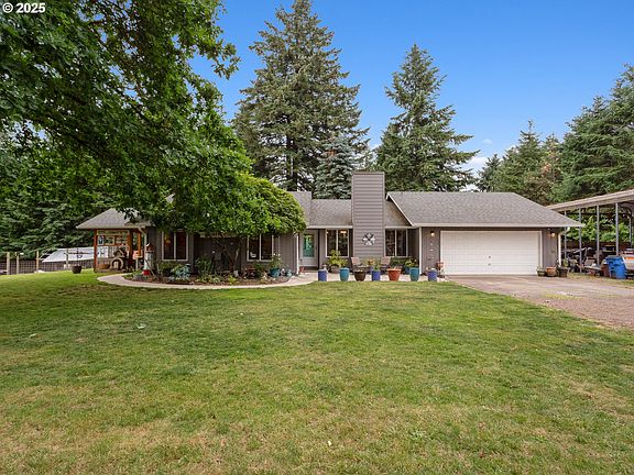 Incredible ranch home on beautiful 1-acre property, fully fenced and gated. Cross-fenced for farm animals, fabulous timber covered patio with a unique wall of windows and stained glass, perennial & veggie gardens, additional covered patio just off the kitchen and the perfect mix of sun and shade! Fully wired for a hot tub with it's own concrete pad next to the firepit. Enjoy the completely updated 1-level open floor plan with 3 bedrooms & 2 bathrooms. Additional features: large garden shed, RV covered parking and 720 sf barn with electricity, small office and lean-to for mower etc. Thriving berry vines and fruit trees to enjoy!