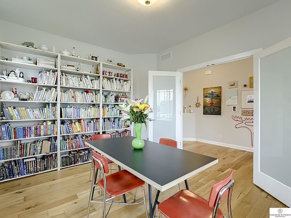 This immaculate 2-story in Elkhorn North's popular Sagewood neighborhood is an entertainer's dream. This incredible home features a huge open floor plan with engineered Oak hardwood floors on the entire main floor, quartz countertops (in kitchen and all bathrooms), and a home office/playroom with a door. Upstairs you'll find a large primary suite with a sitting area, double vanity, walk in closet, and tile floor, 2nd floor laundry and three large additional bedrooms with walk in closets. Lastly step outside and enjoy your panoramic view off the covered deck. The large fenced yard includes a sprinkler system. Home backs up to the elementary school with a back gate. Never wait in the pickup line with walking distance to the middle and high school. Radon mitigation system included and professionally sealed driveway. It doesn't get much better than this, so don't wait! Bentley model. Preinspected. Near Flanagan Lake and trail, shopping and schools.