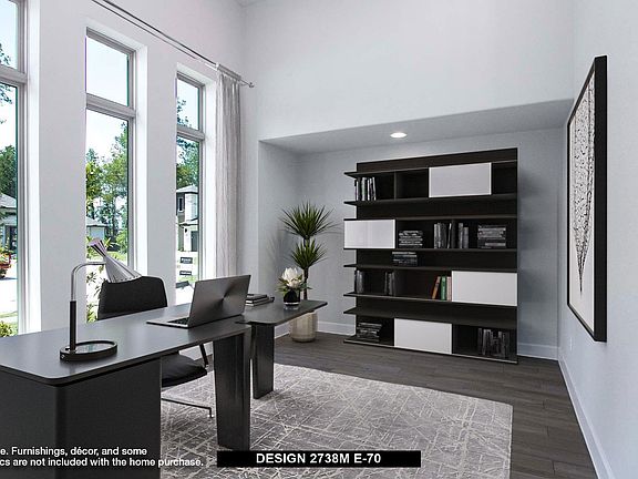 Home office with French doors set at entry with 12-foot ceiling. Game room with French doors off coffered extended entry. Spacious family room with wall of windows opens to kitchen and dining area. Kitchen hosts inviting island with built-in seating space, a double wall oven and a 5-burner gas cooktop. Primary suite includes bedroom with wall of windows. Dual vanities, corner garden tub, separate glass-enclosed shower and large walk-in closet in primary bath. Secondary bedrooms, a full bath plus a guest suite complete this open one-story design. Covered backyard patio. Two-car garage.