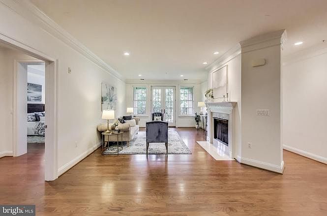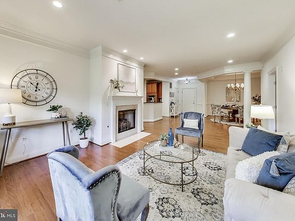 Pristine and elegantly appointed top floor unit with its wide private balcony offers 1706 sq. ft. of living space in wonderfully convenient location. 2 bedrooms, 2 bath, 2 reserved garage spaces. Close to the heart of McLean and minutes to the McLean Station (Metro Silver Line) * grocers, near Capital One Hall, Tysons Corner and with exceptionally easy access to major travel routes this location is prime. The traditional styling includes gas fireplace in living room, high ceilings, chair rail & crown molding, tray ceilings in the formal dining room and primary suite, recessed-lighting, gleaming hardwood floors throughout, open kitchen with gas cooktop, good work space and granite counters, pantry and additional storage cabinetry in adjoining laundry room (full size washer and dryer. ) French doors from the living room leading to the extensive private balcony and high grade windows across the front of the unit create an inviting light-filled interior throughout the day. The floor plan (see a copy in the documents tab) configures attractive placement of the two bedrooms and baths on opposite sides of the unit. The primary suite is comprised of a dressing area with two generous walk-in closets and linen closet, the spacious primary bath with walk-in shower and two vanity/sink areas and an upscale bedroom with elevated tray ceiling & ceiling fan. The secondary bedroom and hall bath are positioned off a separate hallway-ideal for guests' use. In addition to the inviting unit, the amenities at The Morgan provide extensions of the comfort and style of the unit. When touring the property be sure to include the handsomely appointed community areas and the private, beautifully landscaped garden and patio areas complete with benches and gazebo. Whether for gatherings, or personal relaxation, relaxing with a book or conversation with a friend the special spaces in this community enhance the pleasure of being at home! Schedule your visit today!