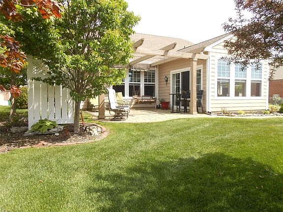 Stunning Ranch! Dramatic entry w/sparkling hdwd floors! Peaceful sunroom w/view of pond, vaulted clgs, corner gas frplc, security system, irrigation system. MBR BA garden tub/sep shower, huge closet. Gorgeous staggered kit upper cabinets, bkfst bar, all applc stay. Stone patio & walkway, pergola w/awning to enjoy landscape designed for privacy, 3 car gar epoxy flr, roof 6yrs 5" gutters, C/A 2018. There is so much to enjoy here!