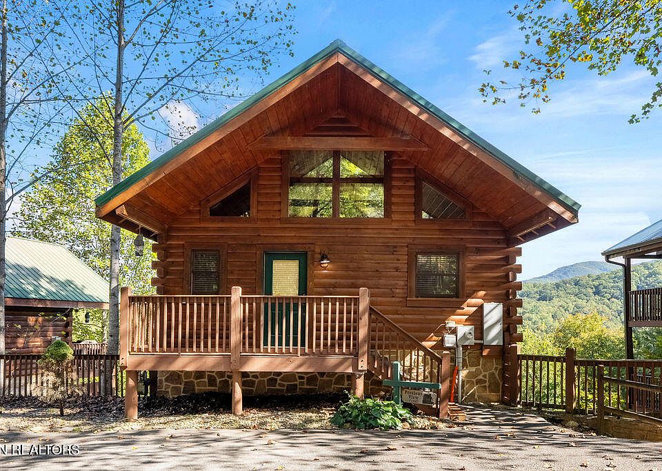 Cozy Log Cabin with Mountain Views - Minutes from Downtown Gatlinburg. Escape to the Smokies with this authentic log cabin just a short drive to all that the Smokies has to offer, hikes, waterfalls, rafting, shopping, moonshine, barbecue & pancake houses! Enjoy National Park mountain views right from your deck. Unwind after a day on the trails, or antique shopping, relaxing in the hot tub. This charming retreat features gleaming log timbers, cathedral ceilings, hardwood floors, and a stunning mountain stone fireplace - everything you want in a true Smoky Mountain cabin. Open-concept great room with tongue-and-groove interior. Tile flooring in kitchen & baths for easy upkeep, Whirlpool tub for indoor relaxation. Fully furnished & turn-key ready - all furnishings stay! Perfect as a second home or income-producing rental - put it on a rental program and let your guests pay for it. Whether you're looking for a personal retreat or an investment, this property offers the best of both worlds: cozy mountain living and strong rental potential.