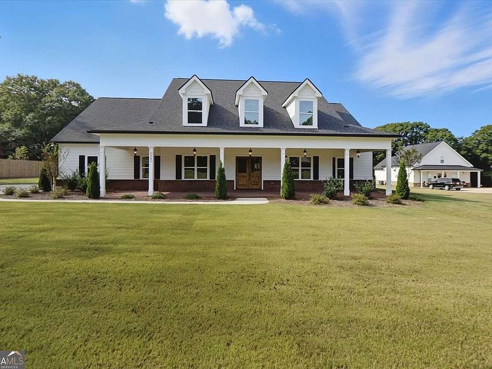Welcome to this beautiful custom-built home, privately nestled on 2 acres just minutes from Downtown Monroe. Step through the front door into the grand foyer, where you're greeted by soaring ceilings, elegant millwork, and views into the vaulted great room. The space features a brick raised-hearth fireplace and wide-plank light flooring that continues throughout the home. Flowing seamlessly from the great room, the beautiful kitchen showcases quartz countertops, a stone backsplash, and a custom vent hood. A four-piece stainless steel appliance package, farmhouse-style sink, and peninsula bar seating complete this inviting space-perfect for both everyday use and entertaining. Adjacent to the kitchen, the formal dining room is enhanced with updated lighting and detailed trim work. Off the foyer, you'll find a flex room that can serve as an office, library, or guest space, complete with French doors. The primary suite on the main level provides a relaxing retreat. The spa-inspired ensuite features a soaking tub, large tiled shower with multiple rain heads, dual vanities with quartz countertops, and an oversized custom closet with a window and built-in shelving. Nearby, the laundry room includes built-in cabinetry, a sink, and easy access to the backyard, along with a convenient half bath for guests. Upstairs, the grand staircase with wrought iron railing leads to three additional bedrooms, two full bathrooms, and ample attic storage. The open landing provides a dramatic overlook into the great room below. Step outside to enjoy the beautiful covered front and back porches featuring ceiling fans, pendant lighting, and tongue-and-groove wood ceilings. The brick paver patio offers a perfect spot to relax or entertain while overlooking the expansive, partially fenced backyard, complete with fresh sod and an irrigation system. The three-car side-entry garage features individual doors with openers and a spacious driveway, providing ample room for parking and storage. This brand-new home combines comfort, craftsmanship, and style-all within a private, no-HOA setting. Seller offering up to $25,000 incentive.
