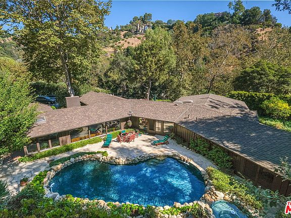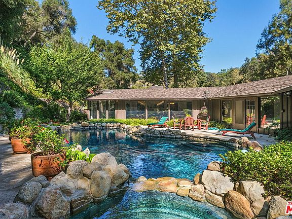 Incredibly rare opportunity to own a magical site of over 1.5 acres with an equestrian retreat designed by renowned architect Cliff May. Located on prime Old Ranch Road in Brentwood's Sullivan Canyon, the grounds are extraordinary and include 6 detached horse stables and a rolling terrain with soaring trees and lush foliage. The charming, single story ranch-style home includes 3 bedrooms and 3.5 bathrooms and is perched well above the street with a long, gated driveway offering an abundance of privacy & peaceful serenity. Features include an open, airy floor plan highlighted by a great-room with vaulted, beamed ceilings and walls of floor-to-ceiling glass showcasing the beautiful gardens, greenery and the sparkling pool and spa. Master suite includes vaulted ceilings and direct access to the backyard and a large private garden. Move in, remodel or expand - incredible potential! This special property offers luxury living with a country feel, right in the heart of Brentwood.