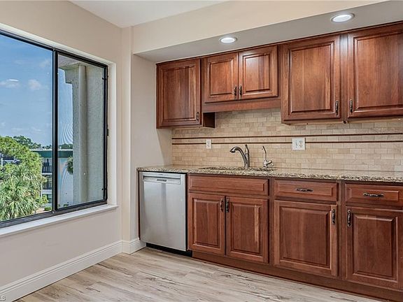 Welcome to this Top Floor, 2 Bedroom, 2 Bath Condo in the Seven Lakes Golf & Tennis Community. True Lanai with Electronic Hurricane Shutters. Updated Open Kitchen concept. Newer Stainless Steel Appliances. Soft Close Cherry Cabinets. Granite Counter Tops in Kitchen and Master Bathroom. Freshly Painted Interior. Full Size Washer & Dryer. A/C Furnace 2022. Hot Water Heater 2021. Culligan Water Treatment System installed 2019, tank is good for 10 years. Additional Water Purifier under Kitchen Sink. Includes Car Port #46 and Golf Cart Space #255. Walk-in Tile Shower with Newer Vanity. New Vinyl Flooring installed in 2023 in Main Living Areas. This Condo overlooks the 8th Fairway of the Newly Renovated Executive Golf Course. New Roof. Exterior of the Building was recently painted. Seven Lakes is a Bundled Golf Community! This Active Adult 55+ Community offers 6 Heated Pools, 6 Hur Tru Tennis Courts, Shuffleboard, Bocce ball, Pickleball, Library Card rooms, Exercise room, Billiards, Wood Shop, Hobbies, Crafts, Cards, Restaurant, Full Time Recreational Area with Dinners, Movies and Dancing Events. Pet Friendly! One pet under 25 lbs. 24 hour manned guard gate. The HOA Condo Fee includes Bundled Golf for 2 Residents, Internet Wi-Fi, Cable, Water, Sewer, Structure Insurance, Trash & Building Maintenance. You only pay for Electricity! NO Golf Transfer fees, NO Golf Green Fees and NO Food Minimum in the restaurant. Centrally located for Dining, Shopping & Beaches! Close to RSW airport!