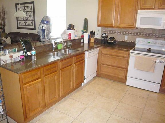 "QUICK CLOSE AVAILABLE" ON THIS MOVE-IN READY 4 BED, 2 BATH HOME IN MEADOWS OF MAUDEHELEN, APOPKA. This Lennar home features an open kitchen/family room design perfect for entertaining & continues outside to the extended screened lanai with elevated concrete deck that overlooks a peaceful view of the conservation area & lake. This beautifully maintained home has a large kitchen featuring solid maple 42 Legacy cabinets with soft close drawers, spacious Silestone countertops & bar top. Stylish custom tiled backsplash, GE appliance package with large closet pantry & recessed lighting. The kitchen and open 20' x 15' family room have 18x18 tile floors. The large master suite includes a walk-in closet & master bath retreat with dual sinks, jetted tub with tile backsplash & custom tile inlay also found in the roomy stand in shower. Both bathrooms feature maple vanities & Silestone counters. Additional features: 3 more spacious bedrooms and a second full bath, linen closet, large laundry room, ceiling fans and blinds throughout, hall closet, upgraded lights & fixtures throughout, 2 car side load garage with opener, security system, Lennox 13 SEER HVAC, 2 panel doors with brushed nickel hardware and gutters/downspouts as well as decorative shutters on the front of the home. The well manicured lawn offers great curb appeal w/multiple varieties of palms, plants & trees, sprinkler system & concrete curbing. Just minutes to Hwy 429, OBT, New FL Hospital in Apopka and the Wekiva Parkway extension.