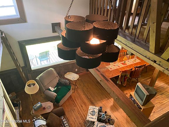 Property sits on 11.98 acres with additional attached 34.84 acre lot just behind. This rustic home has five bedrooms, 3.5 baths with oversized detached 2 car garage with attached Boat/RV carport 15 minutes from Gore Mountain! Property zoned MX8.5 which allows for residential use and many commercial uses! Located in USDA eligible area, property is an Estate and being sold in ''As Is'' Condition