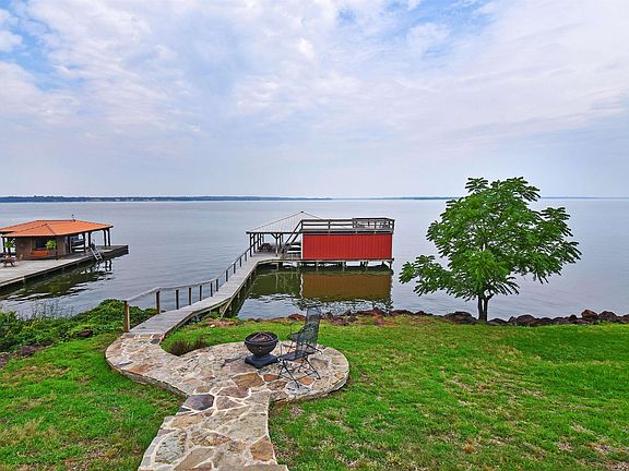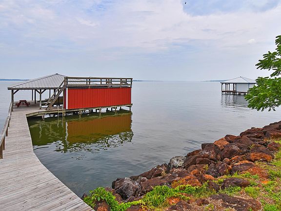 Welcome to this exquisite waterfront home with breathtaking views of the lake! This stunning 4-bedroom, 3.5-bathroom residence offers an abundance of storage throughout, making it a perfect haven for those seeking space and functionality. Upon entering you'll be greeted by the spacious living room, complete with a cozy gas log fireplace and expansive windows. From here, you can access the screened-in balcony, providing a tranquil retreat where you can admire the picturesque lake scenery. The kitchen is a chef's dream offering a convenient kitchen island, a charming breakfast nook, and an elegant formal dining room for hosting memorable gatherings. The master suite conveniently located on the main floor boasts luxurious features including a fully tiled shower, a separate soaking tub, and a spacious walk-in closet. Venture downstairs to discover three additional bedrooms, two of which are connected by a jack and jill bathroom, providing comfort and convenience for family and guests. A well-appointed hall bathroom, a second living room, and a safe room complete this lower level, offering endless possibilities for entertainment. As you ascend to the upper level, you'll be captivated by the large bonus space, perfect for a game room or home office. Uncover an exciting feature in this area - a secret door leading to a hidden hallway that reveals another bonus space. Here, you'll find an elevator/lift that seamlessly connects to the garage simplifying the process of bringing furniture and heavy items upstairs. Head outside and experience the true joy of waterfront living. The covered patio invites you to savor outdoor gatherings from delightful barbeques to casual get-togethers with friends. The boat house is a fantastic addition to this property, boasting two boat lifts, a storage room, and a balcony where you can soak in the panoramic views of the lake. Don't miss the opportunity to make this exceptional property your own!
