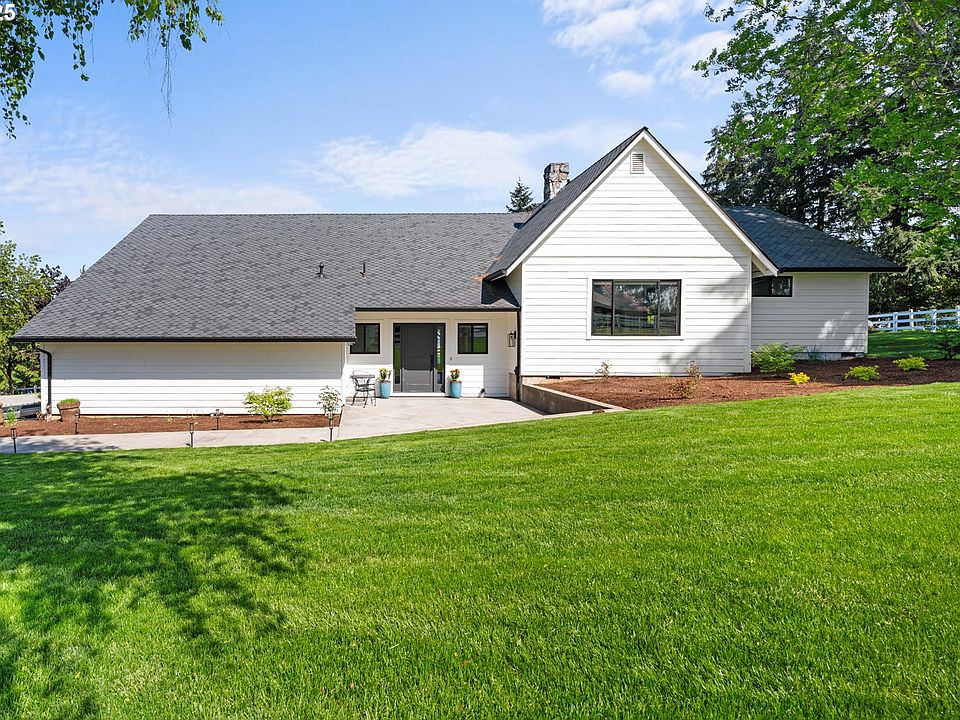This fully remodeled home blends timeless materials with modern comforts and designer finishes. Inside, you’ll find three-quarter inch white oak hardwood floors, solid core doors, and dramatic vaulted ceilings with floor to ceiling window for spectacular views that fill the main living area with light. The kitchen is built for those who love to cook and/or entertain, featuring a 48-inch Wolf double oven, Vent-a-Hood, and a built-in Sub-Zero wine fridge. Throughout the home, you will find high-end fixtures from Restoration Hardware and Rejuvenation add warmth and sophistication, while a brand-new roof, brand new HVAC system with A/C ensure year-round comfort. The primary suite offers volume and comfort! The beautiful newly-landscaped property comes with a complete irrigation system, including a large covered patio lit and wired for heating with a direct view of Mount Hood—an ideal spot to relax or host. With thoughtful upgrades throughout and exceptional attention to detail, this is a truly special home that stands apart in both quality and character.Builder-ready plans for a guest house with attached three-car garage/shop by Candid Design available to buyer upon offer acceptance.Buyer to do due diligence.
