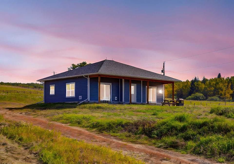 OPEN HOUSE SUNDAY Oct. 5 2-5 pm Discover the perfect blend of country living and city convenience with this charming 1 bedroom, 1.5 bathroom bungalow set on 4.2 acres. Offering 1,220 sq. ft. of open-concept living, this home features a spacious primary suite complete with a walk-in closet and a relaxing ensuite with a soaker tub. Large windows fill the space with natural light, making the open floor plan ideal for both everyday living and entertaining. Enjoy the peace and privacy of your own acreage while being just minutes from Calgary, with quick access to Stoney Trail for an easy commute. Whether you’re looking for your first acreage, or seeking a quiet retreat close to the city, this property is a must-see.