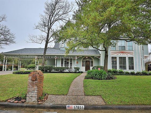 Stunning Custom Victorian style home on .32 acre corner lot w/full 3-car garage + porte-cochere w/ circle drive. So many unique items! Gabled roof (10/2015), gingerbread trim & textured shingles, wraparound porches & decks. Venetian windows around front door opens to 12" wide solid wood flooring. Inside features custom mill work, including coffered ceilings, stained glass windows & transoms throughout. All bedrooms upstairs + amazing study, shaped as a tower! Master has romantic gaslog fireplace, high ceilings & opens to private balcony. Chef's kitchen w/bead board ceilings, stainless appliances(2015) & glass-front cabinets, Silestone counter tops. Water heater 2015, remodeled master shower 2015, pool re-plaster 2011, HVAC 2012, int. paint 2016, fence 2017.Park-like backyard with amazing pool & spa! Includes: Sprinklers, pool pump 2018, Polaris 2017, mosquito misting system. Excellent Klein schools & very convenient location. No Harvey flooding!