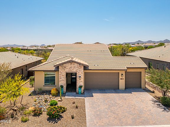 IMPECCABLE NICE MODEL ON OVERSIZED LOT WITH GORGEOUS MOUNTAIN VIEWS IN TRILOGY AT VERDE RIVER GOLF COMMUNITY. Situated on a private lot that backs to a natural area. This well-designed open concept floor plan has a spectacular kitchen upgraded with Monogram Appliances, a large granite island with gorgeous cabinets and an elegant backsplash. Enjoy views from the great room with upgraded corner sliding glass doors leading to a covered patio with remote patio enclosing sunscreens. Relax on the extended patio with gas firepit and amazing views of Four Peaks. Plus, den/office, spacious smart space, ceiling fans, custom remote indoor shades, full home water purifier, RO system, amazing natural light throughout and a sought-after 3 Car garage with built-in cabinets and 220V power. Experience Trilogy at Verde River, a stunning resort style community nestled against the beautiful Tonto National Forest. The amenities at Verde River are spectacular. The Community boasts an 18-hole Championship Golf Course with a picturesque driving range, putting green, and separate chipping/pitching practice areas. One visit and you will understand why the PGA Southwest Section selected Verde River Golf & Social Club to host the AZ Senior Open and AZ Match Play Championships in 2020, 2021 and 2022. The active lifestyle amenities continue with pickle ball and tennis courts, with Clubs designed for social or competitive play. Adjacent to the sport courts for your convenience are bocce ball courts and an open grass area for social gatherings.