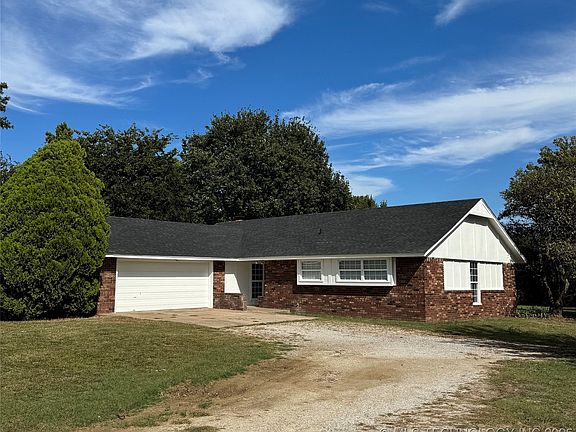 Welcome home to this serene property, tucked away just outside of town. Situated on just under 1.5 acres, this home offers the ideal blend of country charm and modern updates. Recent improvements include a new roof and fresh interior and exterior paint. 50-gallon hot water tank (2023). Inside, you'll find a spacious primary bedroom with ensuite bath and plenty of natural light throughout the home. All bedrooms are conveniently located on one end. The large family room provides gorgeous backyard views, while sitting in front of the fireplace. The spacious kitchen has plenty of counterspace to prepare your holiday meals. The backyard is a true highlight, featuring tall pine trees, a large variety of matures trees, and a tranquil atmosphere, perfect for relaxing or entertaining outdoors. Metal shed in the back provides additional storage for lawn equipment, etc. Easy access to Highway 66 and is just a short drive to local shops, dining, and schools. Less than 10 minutes to Oologah Lake. Located in Oologah School District.