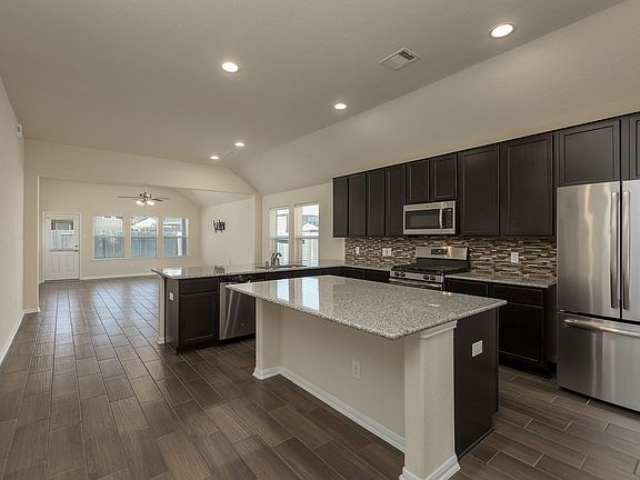 STUNNING single story home with 3 bedrooms and 2 full baths. Excellent split floor plan with high ceilings. Upgraded wood tile floor throughout all main living area. Amazing kitchen layout with a large island, stainless steel appliances, 42" cabinets, beautiful granite counter-tops and mosaic tile backsplash. This is every chef's dream kitchen with tons of prep space and storage. Stainless Steel refrigerator is included as a bonus! Master bedroom is located in the back for privacy. Master bathroom has an over-sized shower and large walk-in closet. Garage floor is sealed and has a separate A/C unit. Overhead storage added with decking above garage. Covered back patio is extended and has a ceiling fan. This home is loaded with tons of upgrades and conveniently located for shopping, restaurants, and highways. Zoned to Atascocita schools.