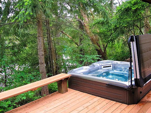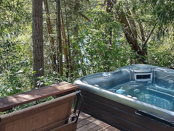 LAKE FRONT TOWNHOUSE 2 BR, 1 BA, with private deck and hot tub overlooking the lake. Beautiful and serene forest setting. Automatic standby generator, heat pump and air conditioning. Baseboard heaters and wood stove in living room. New roof in 2006. New stainless steel kitchen appliances in 2009. New paint and deck in 2015.
