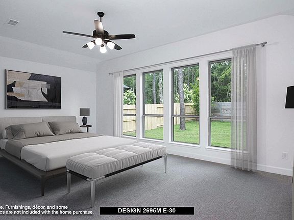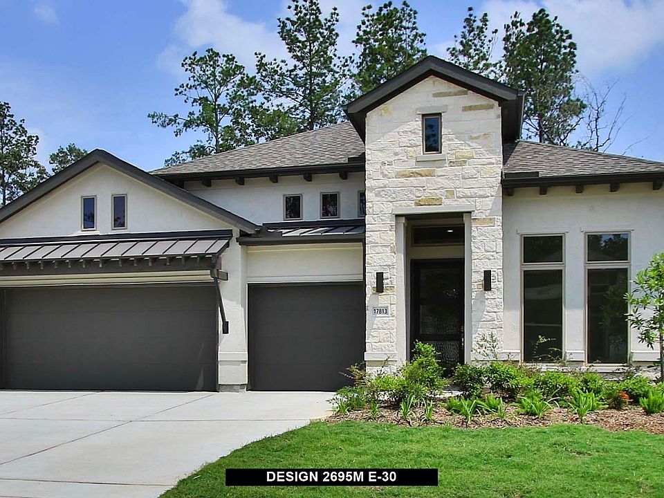 Welcoming entry framed by home office with French doors. Extended entry with 12-foot coffered ceilings. Open family room with a wood mantel fireplace and wall of windows. Island kitchen with corner walk-in pantry, double wall oven, and 5-burner gas cooktop opens to dining area. Secluded primary suite boasts a gorgeous wall of windows. French doors, dual vanities, garden tub, separate glass enclosed shower and two walk-in closets in the primary bathroom. Private guest suite with a full bath and walk-in closet, additional bedrooms and a utility room complete this one-story design. Extended covered backyard patio. Mud room just off the three-car garage.