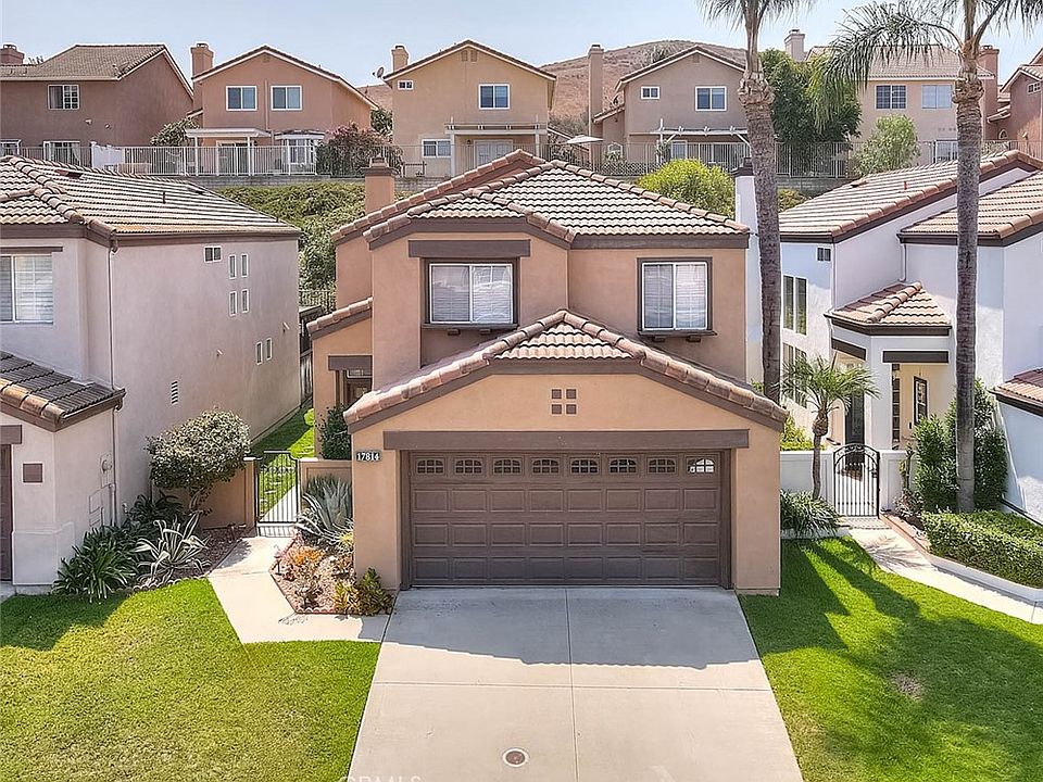 Nestled in a highly sought-after neighborhood, this beautifully maintained residence is move-in ready and offers a warm, inviting atmosphere. Step inside to soaring ceilings and abundant natural light that enhance the spacious formal living and dining area—ideal for entertaining. The open-concept kitchen flows seamlessly into the cozy family room, anchored by a charming brick fireplace perfect for relaxing evenings. Upstairs, the primary suite features an ensuite bath with dual sinks, a large tub/shower combo, and two generous closets. Two additional bedrooms and a full bath complete the upper level. Enjoy outdoor living in the backyard, designed for both relaxation and entertaining. You will appreciate the low monthly association dues that include access to the community pool, spa and playground. Don’t miss your chance to own this exceptional home in one of Chino Hills’ most desirable communities!