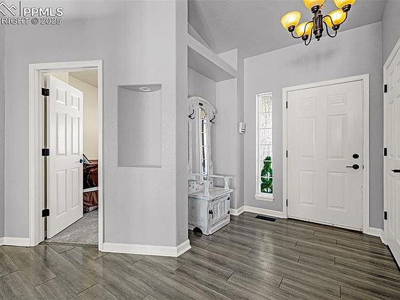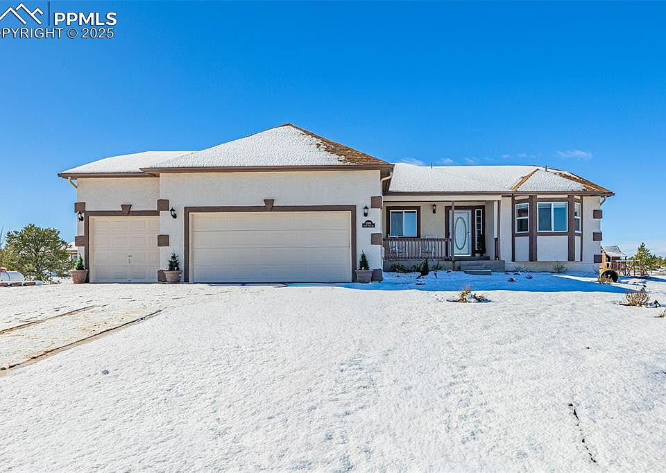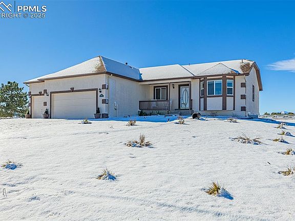 Welcome to this stunning 5-acre Pikes Peak view estate in the desirable Peyton Pines community. This custom ranch-style home with fully finished basement offers 5 bedrooms, 3 baths, and a 3-car garage. The open main level features a stone-clad fireplace in the living room with tons of natural light through the skylights and back slider that leads to the deck for an unobstructed view of Pikes Peak. The luxurious primary suite has its own fireplace, a walk-in closet and a 5pc bath on the main level. The finished basement boasts a third fireplace, custom wet bar, additional bedrooms, and a full bath with a jetted tub. The property is fully fenced and features front yard landscaping, pine trees and even a playset. Enjoy year-round swimming in the heated in-ground pool and endless potential in the attached, unfinished pool house. This rare combination of acreage, home size, amazing views and an in-ground pool is something that doesn’t come around very often, if ever in this area. Don’t miss your chance to see this one-of-a-kind listing, Welcome Home!