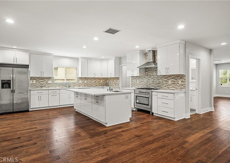 Come see this beautiful Encino Park home with a modern open concept floor plan. Step into the foyer which leads you to an open living area, dining area, then to the expansive center island cooks kitchen. Amazing glossy white soft close cabinets, Marble backsplash, smooth surface Quartz counters, stainless sinks & stainless appliances. Adjacent is a convenient walk-in pantry with loads of storage. Opposite is an open family room that accesses a spacious yard with a covered patio. There are 4 bedrooms 3 baths. One bedroom would make a great office with its double pocket doors and closet. The beautiful large master suite has a modern touch. A magnificent walk-in ceramic tiled shower, dual vanity with Quartz counters, plus a walk-in closet, recessed lighting, beautiful engineered hardwood floors, new custom moldings, New polished chrome fixtures, fully dry walled finished Direct access garage with New sectional door with auto opener and more. Easy access to the 101 freeway. Close to Ventura Blvd, Trader Joes, shop, restaurant and many more. This one won't last!