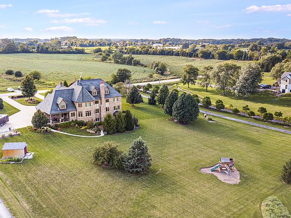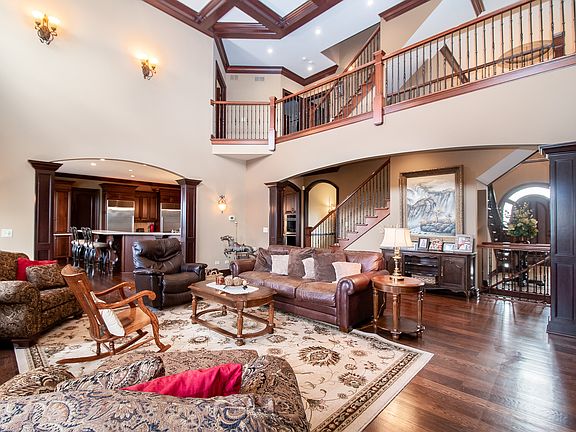 Estate living at its best with this Gorgeous 10,000+ Square foot home on over 2.5 Acres! Best of the Best Craftsmanship throughout! Master bedroom features 18x17 bonus recreation room, 11x15 Walk-in Closet and a amazing master bath w/whirlpool tub and large walk-in shower! 2 story family rm, main level office, walk-out finished basement with 2nd fireplace, Custom Wet Bar and Theater room! 4 car heated garage also room for additional out building!
