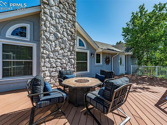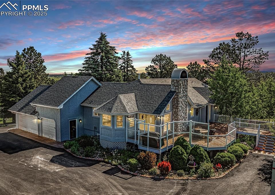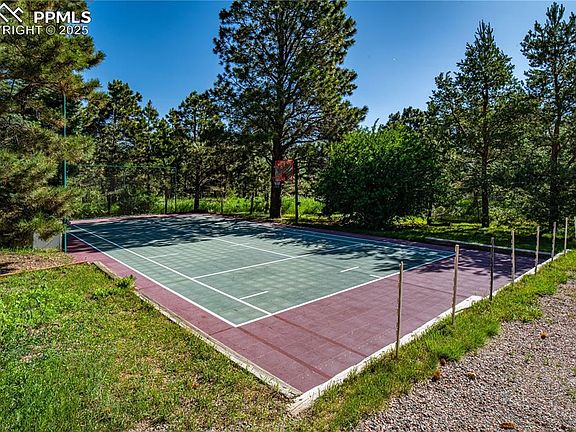 Your Private Colorado Retreat Awaits Nestled in the desirable Canterbury East community of Monument, this rare custom ranch is more than a home—it’s a lifestyle. Set on five acres of pristine, equestrian-friendly forest, this property delivers the perfect balance of seclusion, natural beauty, and convenience, with top-rated District 38 schools, Monument’s small-town charm, and easy access to both Denver and Colorado Springs. Lovingly owned by the same family for over 30 years, this 5-bedroom, 4-bath sanctuary offers nearly 4,000 sq. ft. of living space designed for comfort, entertaining, and connection with nature. The property was curated by a professional forester, creating a vibrant landscape filled with diverse trees and lush greenery that’s rare to find. Step inside to soaring spaces and thoughtful design: Sun-drenched living room with a dramatic wood-burning fireplace and warm wood floors. Updated chef’s kitchen featuring granite island seating, glass display cabinets, and the perfect flow for gatherings. Main-level primary suite that feels like a private retreat, complete with peaceful forest views. Bring the outdoors in—or the indoors out—with incredible spaces for entertaining: 633 sq. ft. composite deck with lighted steps, glass wind screens, and a built-in grill alcove. Walk-out lower level offering a second master suite, guest bedrooms, a cozy family room with fireplace, and stamped concrete patio with fountain and lush landscaping. Outside is a Colorado dreamscape: private trails, a fenced garden, and even a lighted sport court for pickleball, tennis, basketball, or volleyball. Whether you’re hosting friends under the stars or enjoying the quiet beauty of your own forest, this home was made for creating memories. Space. Serenity. Monument living at its finest. Schedule your private showing today—this rare property is one you need to experience in person.