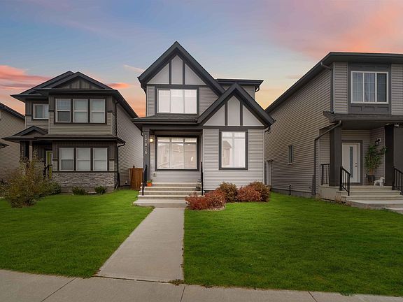 Step into over 1,800 sq. ft. of refined family living in this custom-built Morrison home, perfectly located in the heart of McConachie — one of northeast Edmonton’s most family-friendly communities. With 9-ft ceilings, hardwood floors, and beautiful natural light, the open main level feels bright and inviting. The chef-inspired kitchen offers quartz counters, a massive island, gas cooktop, built-in oven, and an XL walk-in pantry — perfect for busy families and entertaining. Cozy up by the fireplace in the living room, or unwind upstairs in the spacious primary suite with a 4-pc ensuite and walk-in closet. Two additional bedrooms and a versatile bonus room complete the upper level. Added comforts include central A/C and a soundproof laundry room. Surrounded by walking trails, parks, and great schools — this home blends elegance, comfort, and community.