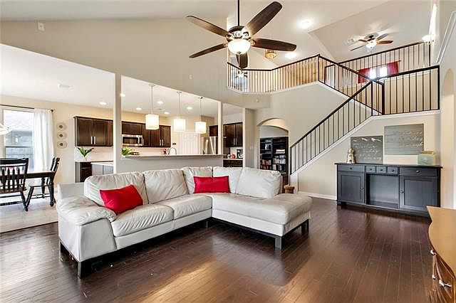 Gorgeous home with lots of upgrades in the Lake Travis school district! Most spacious floor plan in the community with 4 bedrooms/3.5 bathrooms, and extra dining and living! Natural light fills the house - boasting high ceilings, wood flooring, steel staircase rails, and a large kitchen w/ granite counters. The outdoor area features a fire pit - perfect for entertaining friends! Located in a quiet neighborhood with easy access to Bee Cave, Lakeway, and Dripping Springs.