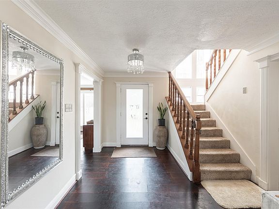 Inside, you’re welcomed by soaring high ceilings that flow through the formal living and dining areas into a dramatic two-story family room anchored by a warm masonry fireplace perfect for gatherings or relaxing in style. The large kitchen opens to the breakfast and family rooms, offering an ideal layout for both everyday living and entertaining.